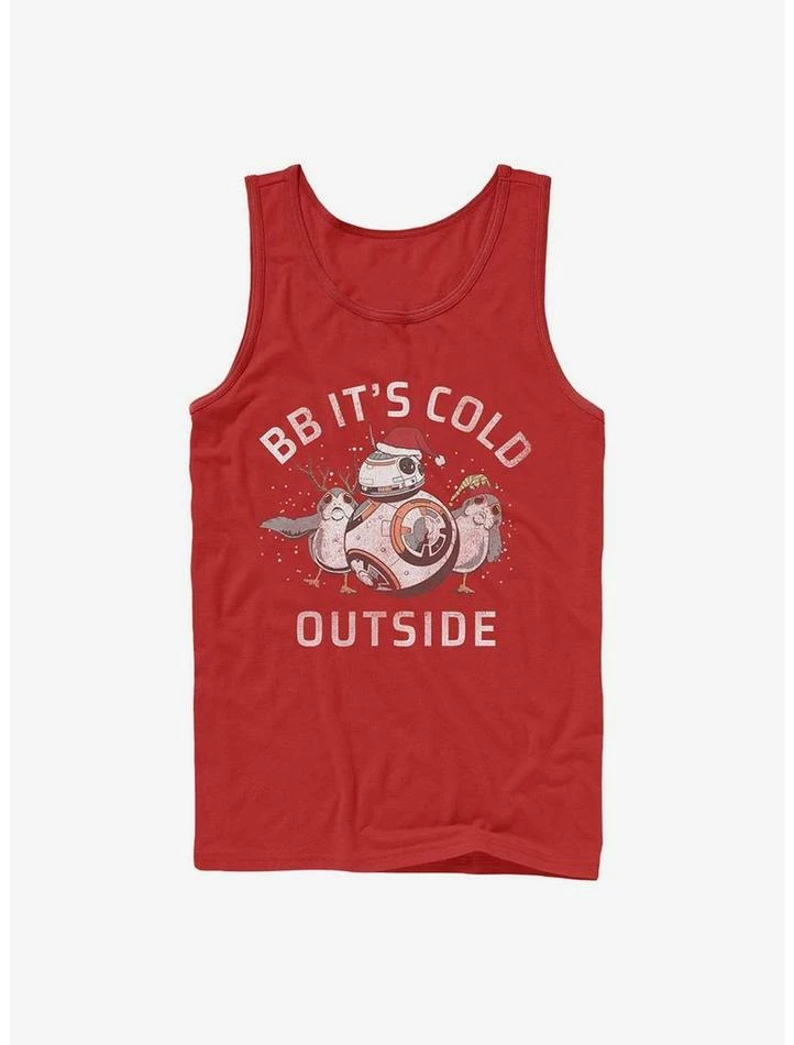 Brr! BB it’s cold outside! This cute ‘n’ clever red Star Wars tank features adorable droid BB-8 in a Santa Hat, flanked by a reindeer Porg and an elf Porg.