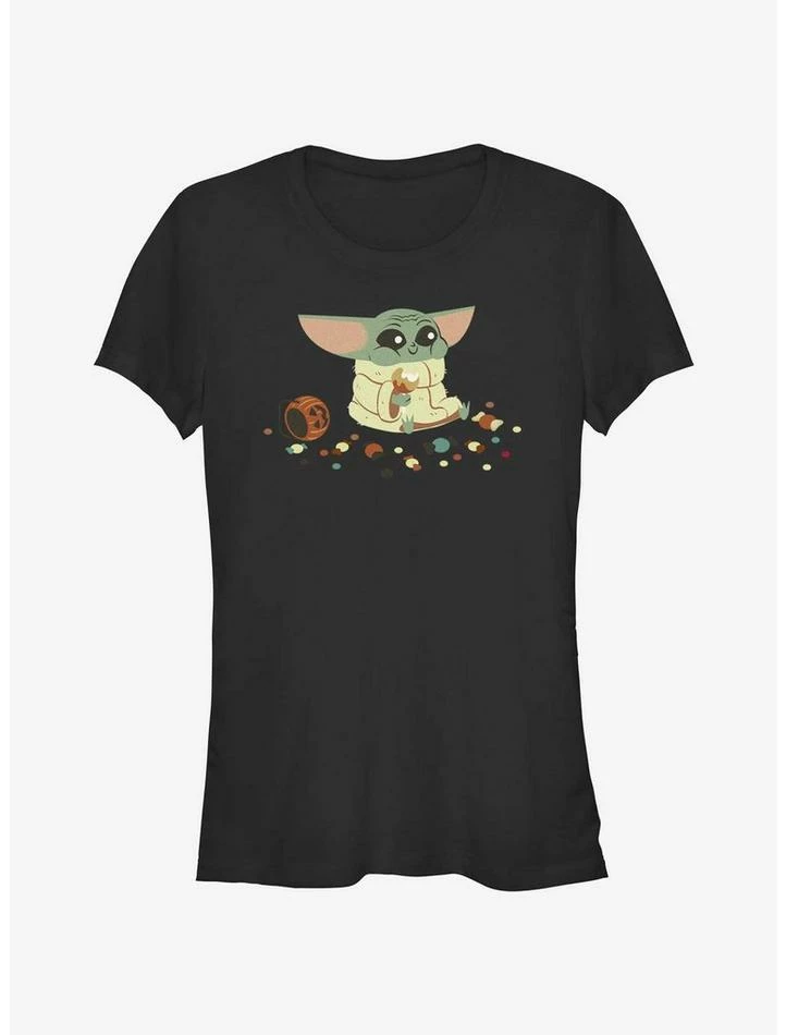 Promo ⭐ Star Wars The Mandalorian Grogu Eating Candies 👧 Girls T-Shirt 🔔