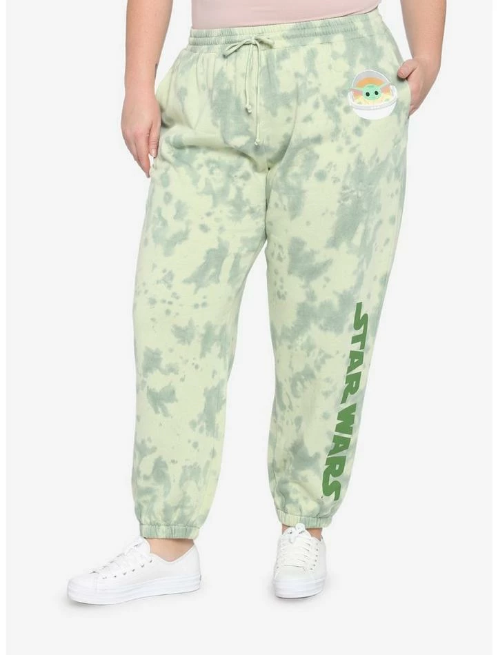 Let the cutest bounty in the galaxy keep you warm this winter with these The Mandalorian green wash sweatpants. Featuring a graphic of Grogu in his hover pram at the left hip and the Star Wars logo on the left leg. Elastic waistband, drawstring and pockets.