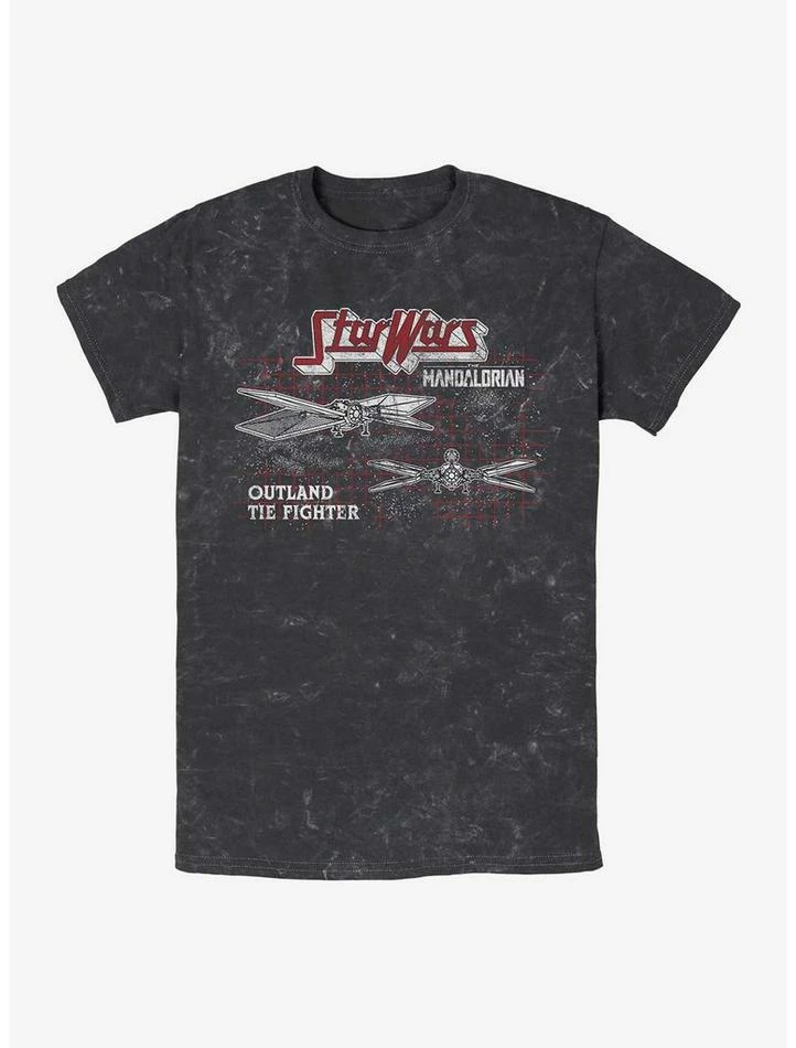 Ohhh, ship! This black mineral wash tee — inspired by the Disney+ series The Mandalorian — features a Star Wars logo above an Outland TIE fighter, the modified version of the Galactic Empire’s standard starfighter ship.