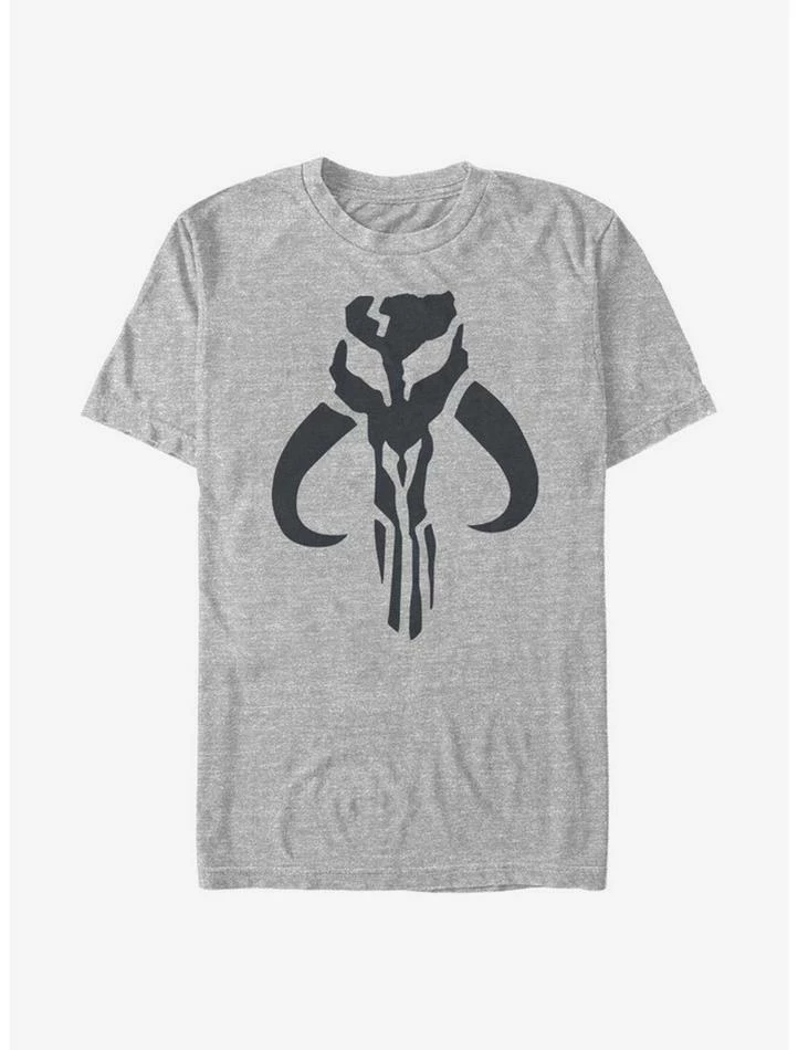 Rule the planet Mandalore — or just this one — in style. This lightweight heather grey tee features the skull of the Mythosaur — the symbol of the Mand’alor.