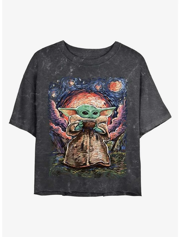 Brand new ๐ Star Wars The Mandalorian Sipping Starries Mineral Wash Crop ๐ง Girls T-Shirt โ๏ธ