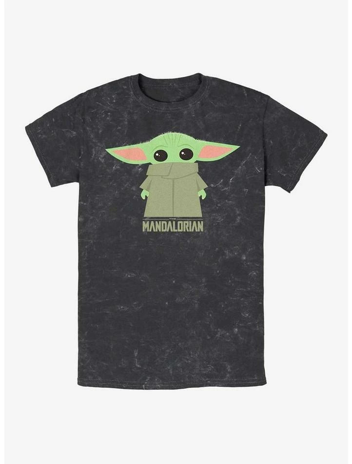 Adorbs! Grogu — AKA The Child — appears on this black mineral washed Star Wars: The Mandalorian tee.