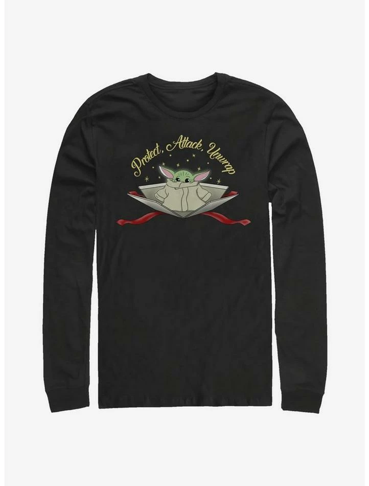 Deals 🔔 Star Wars The Mandalorian The Child Protect Attack Unwrap Long-Sleeve T-Shirt 👍