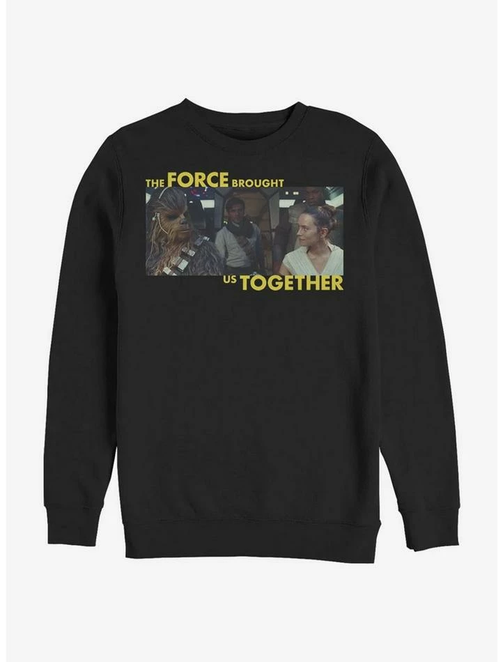 Chewbacca. Poe. Finn. Rey. The Force brought them together — and the Force is gonna keep ’em together, too! This black crewneck sweatshirt features images of our heroes from Star Wars: Episode IX – The Rise of Skywalker.