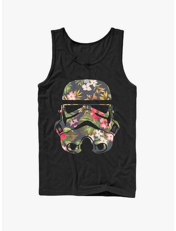 Even those on the Dark Side can stop and smell the hibiscus with this black Star Wars tank. This unique Star Wars style features a Stormtrooper helmet in a colorful tropical floral print — so fans can celebrate the sunny side of the soldiers of the Galactic Empire.ย