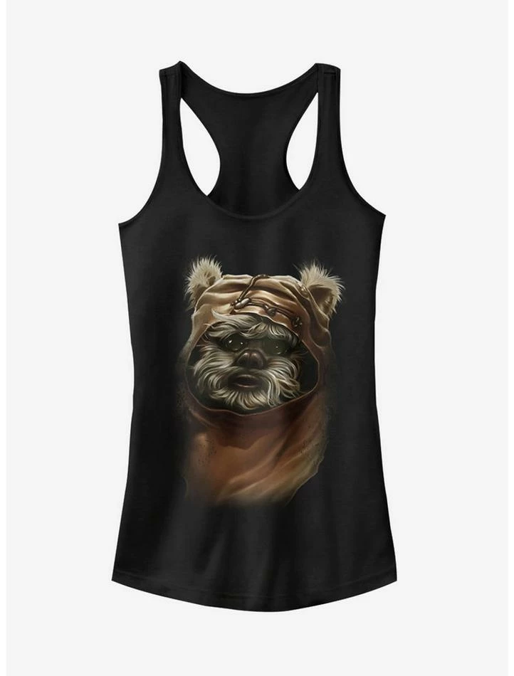 The forest moon of Endor never feels too far away when you’ve got the Star Wars Wicket Ewok Black Racerback Tank Top. Wicket W. Warrick, the brave Ewok who met Princess Leia before persuading his people to join the fight against the Empire, is printed on the front of this black Ewok shirt. 60% Cotton, 40% Polyester.