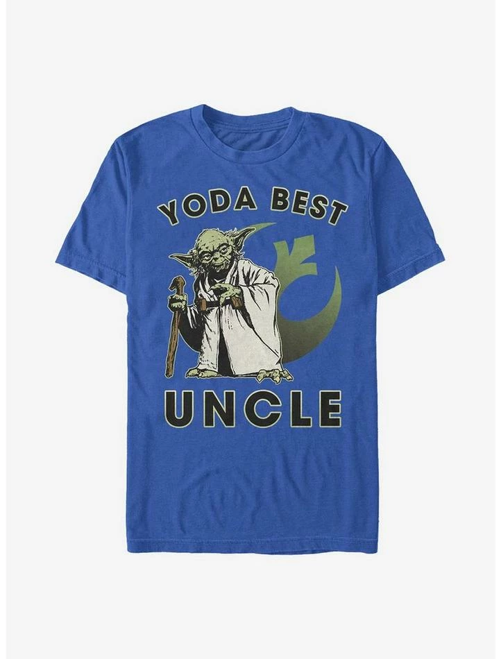 Yoda best! Give your uncle the props he deserves with this royal blue Star Wars tee that has the little green Force-sensitive alien appearing alongside “Yoda Best Uncle” verbiage.