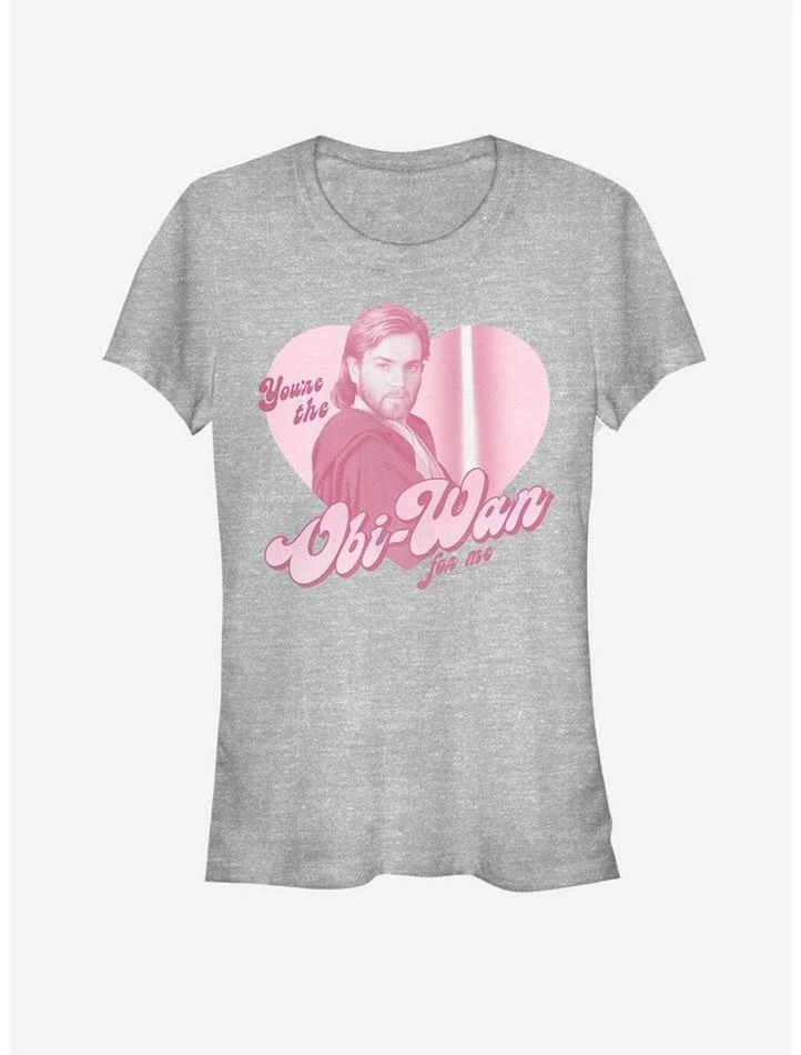 Looking for that special some-wan? Put yourself out there with this fitted heather grey tee! It features the dreamy Jedi in a heart and says, “You’re the Obi-Wan for me.”